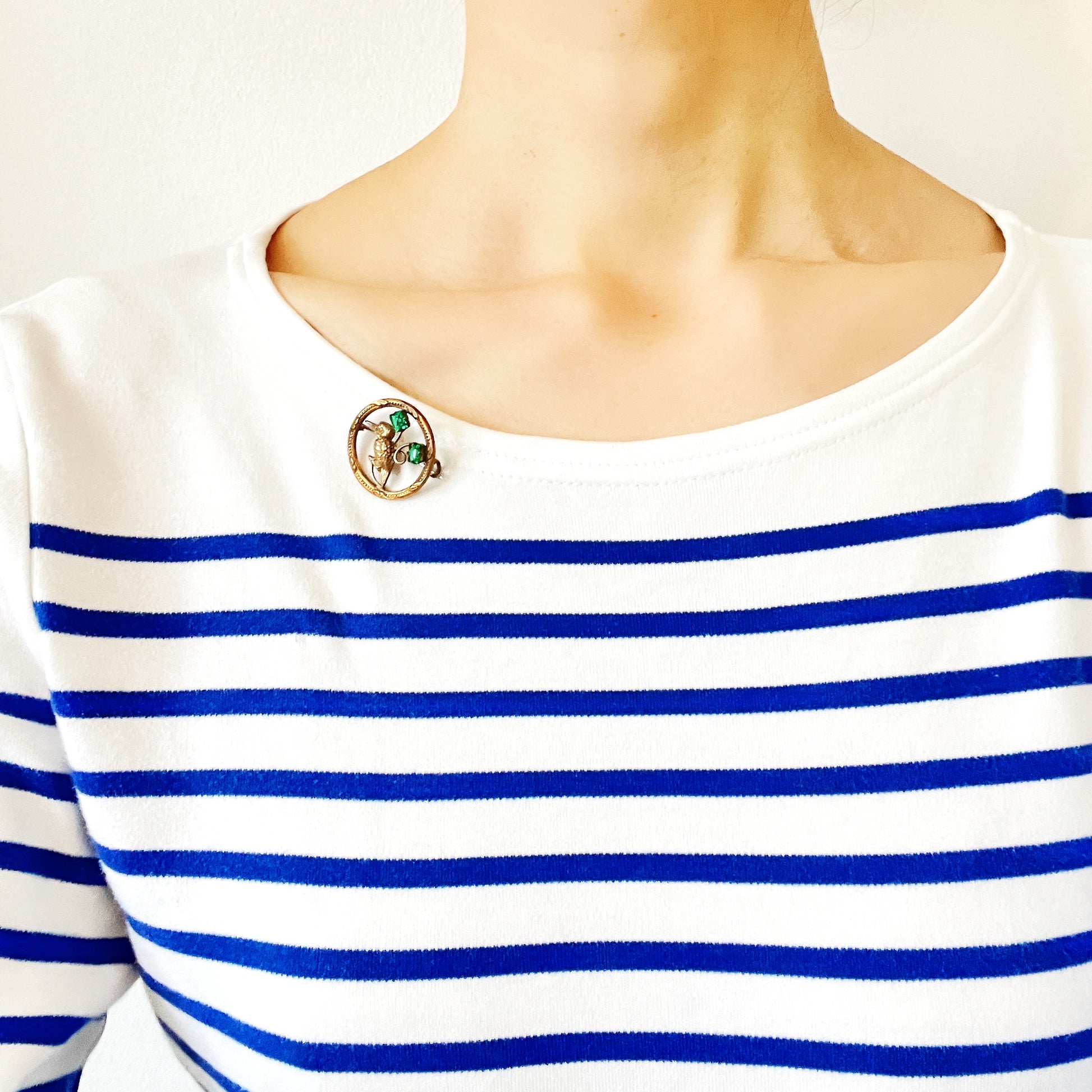VINTAGE ART DECO Gold Ring & Kingfisher Bird Green Glass Brooch