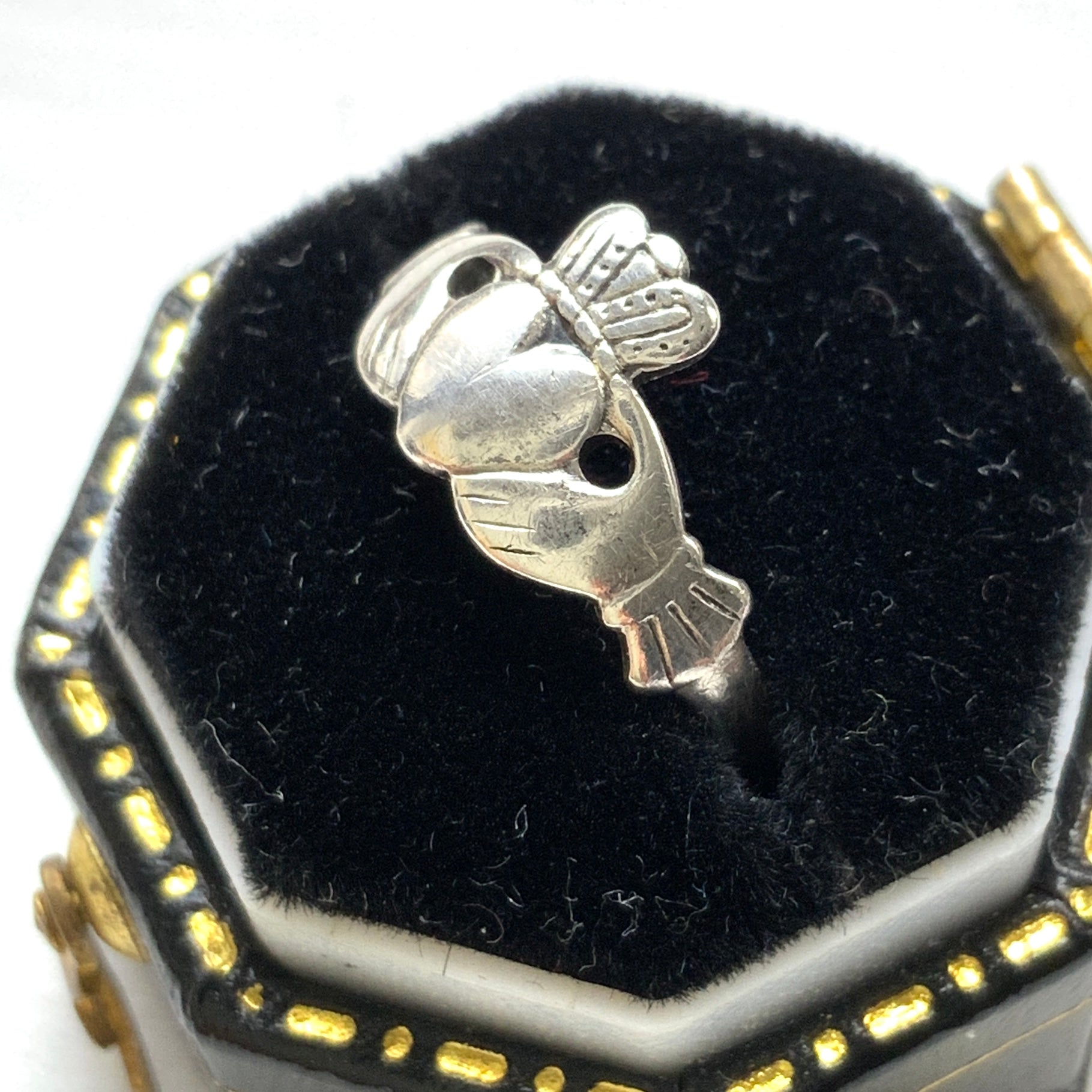 VINTAGE 1980's Claddagh Silver Pinky Ring