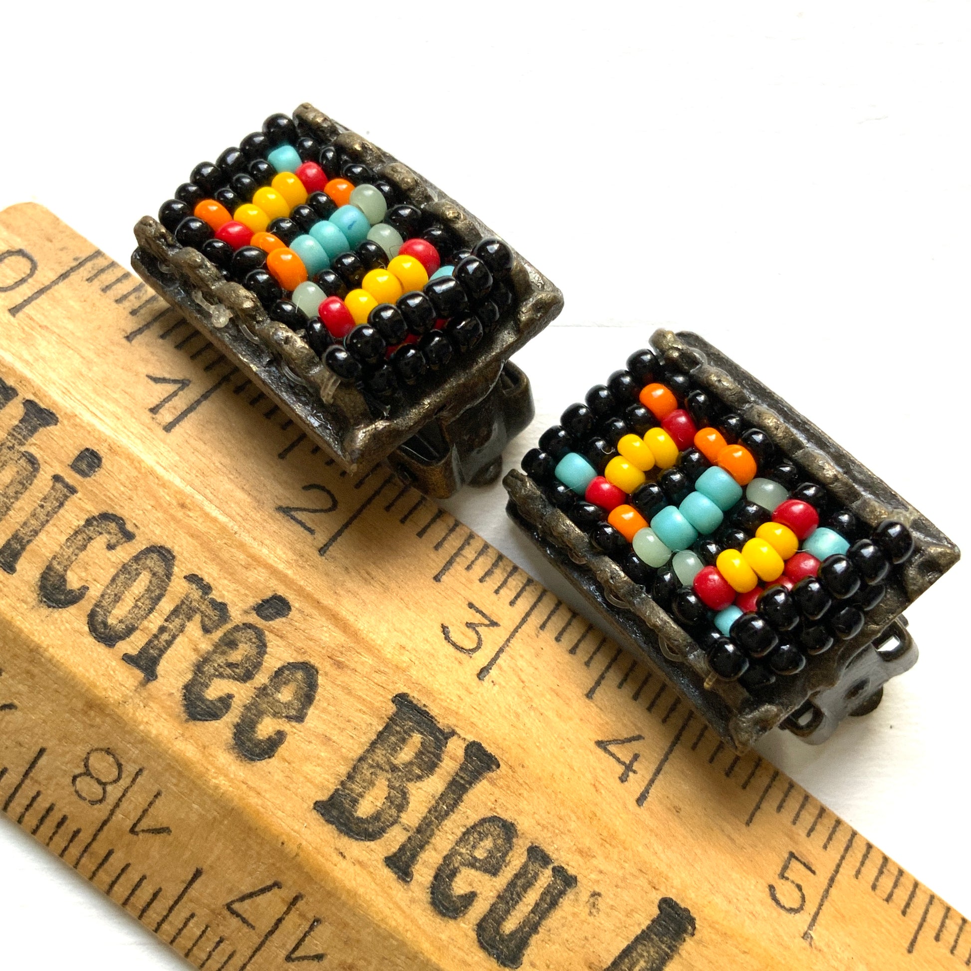 VINTAGE Multicolour Glass Beaded Square Earrings
